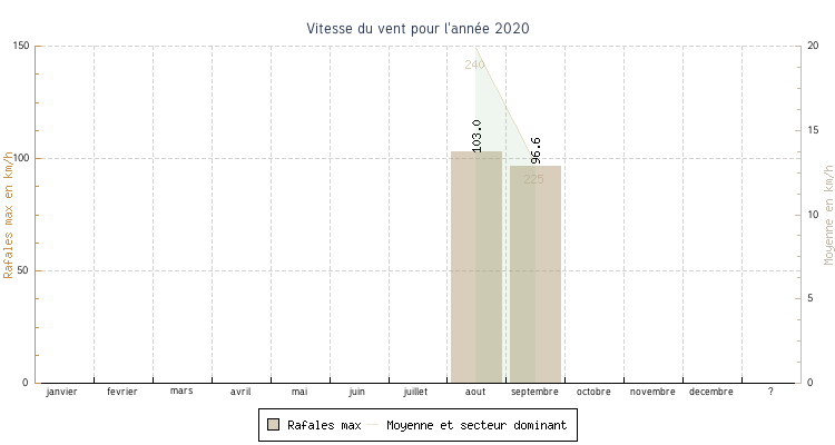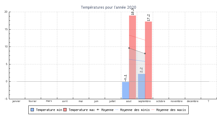 | aout | -0.1 °C | 6.4 °C | 18.9 °C | 13.3 °C | 9.6 °C | 19.9 km/h | 103.0 km/h | 240 |